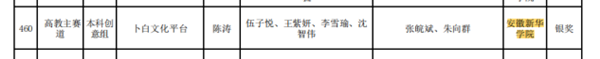 本届竞赛共有来自全省160余所学校、9万余个项目、近60万人次参赛,经过激烈的角逐,pp电子文化与传媒学院2019级汉语言文学专业陈涛、2019级汉语言文学专业伍子悦、2019级广播电视编导专业李雪瑜、2018级新闻学专业王紫妍、2017级广告学专业沈智伟同学的《卜白文化平台》项目荣获安徽省银奖( 指导教师为张皖斌、朱向群) ;2020级汉语言文学专业李金存、2020级汉语言文学专业张乐、2020级汉语言文学专业谢程程、2020级汉语言文学专业董莎莎、2019级广告学专业王秀玲、2020级药学专业张思懿、2017级国际经济与贸易专业王银银同学的《岳西草堂》项目荣获安徽省铜奖(指导教师为阳丽、汪恒宇)。