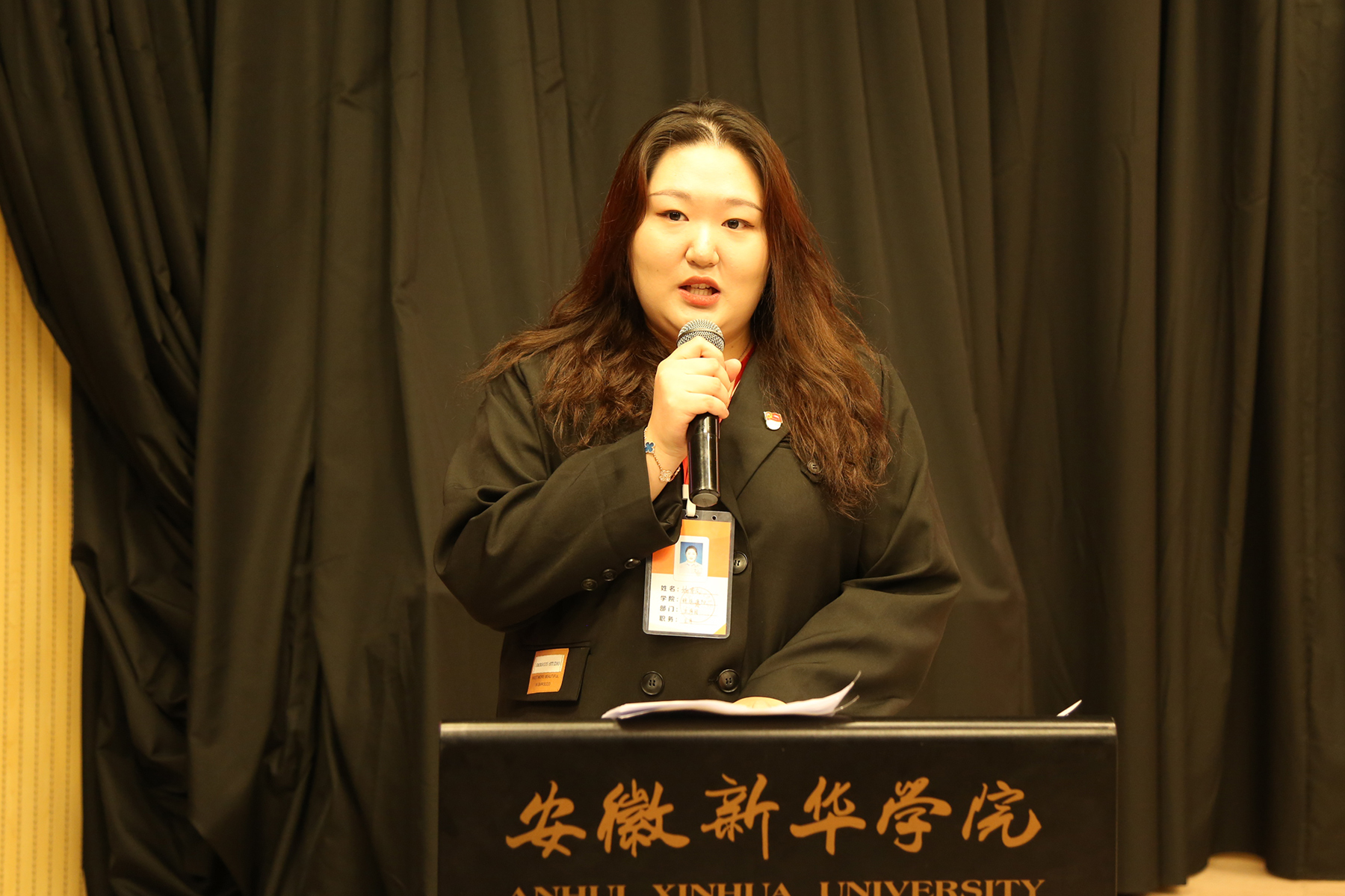 新当选的学生会主席团成员姚希文作表态发言,人生只有在不断挑战自我、超越自我、战胜自我中才能实现人生价值。她表示当选后要进一步完善自我,提高自身各方面能力素质,以更加饱满的热情和积极的心态去对待每一件事情;今后以“奉献学院,服务同学”为宗旨,真正做到为同学服务,齐心协力将学生会发展的越来越好。