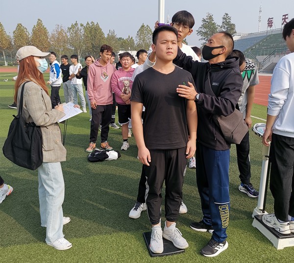 本次抽测对身高、体重、肺活量、50米跑、坐位体前屈、立定跳远、引体向上(男)、仰卧起坐(女)、1000米跑(男)、800米跑(女)等项目进行逐项测试。按照《国家学生体质健康标准》相关项目的评分标准,结合抽测实际,对各测试项目的平均分、合格率、良好及优秀率等进行统计和排名,得分60分以上为合格,80分以上为良好。整个测试过程规范有序,同学们个个精神饱满、全力以赴。通识教育部主任王士赵、副主任何亚梅现场指挥,部分体育教师和班级辅导员老师积极配合专家组测试工作。