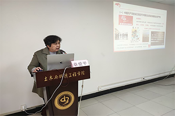 本网讯(通讯员:黄春晓、窦宇航)11月19日下午,城市建设学院邀请安徽省委讲师团高端讲师、pp电子官方网站素质教育研究中心研究员卓爱平教授针对学习《中国共产党简史》一书开展“中国共产党为什么能”党史学习教育专题讲座。全院师生党员聆听了本次讲座,讲座由院党总支副书记崔风波主持。