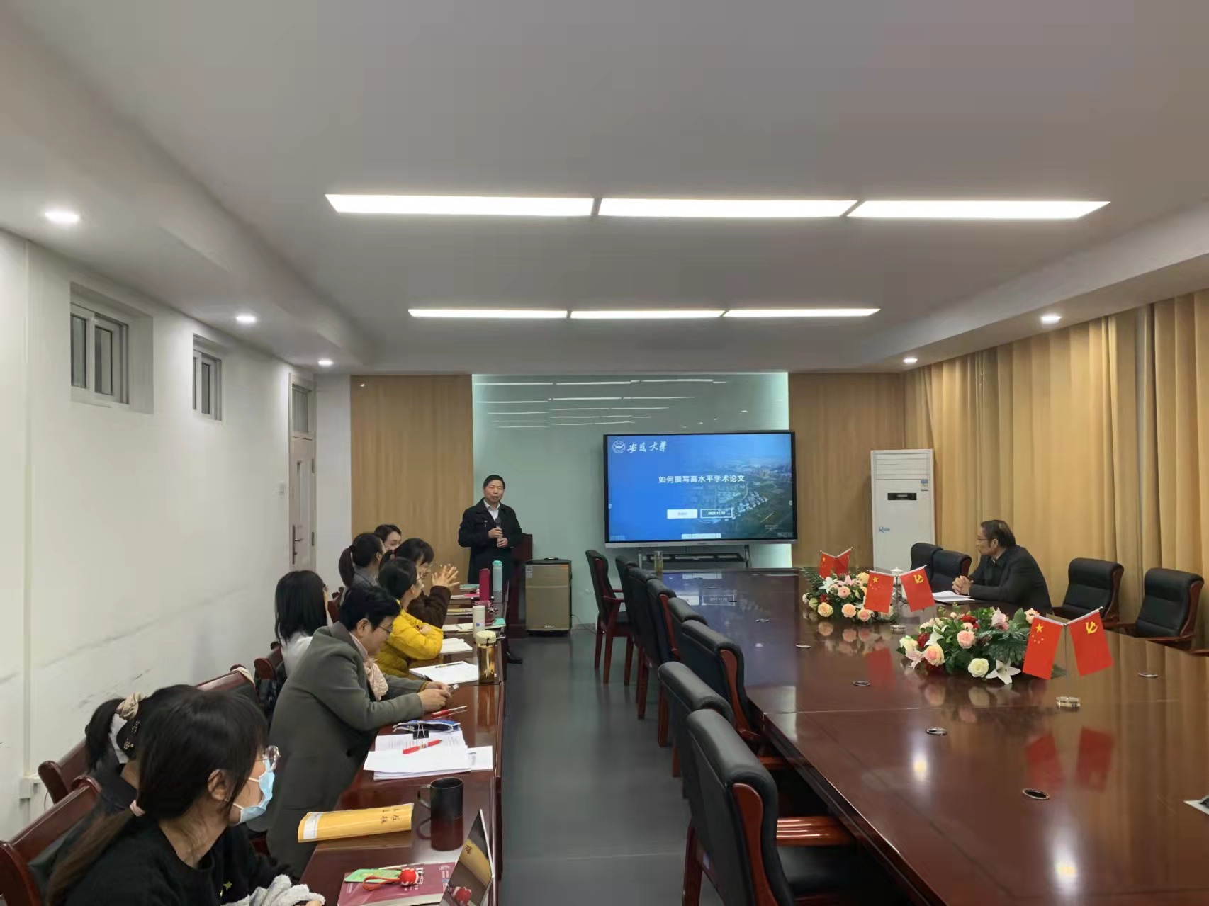 本网讯(通讯员:佘月月)11月10日,应pp电子外国语学院的邀请,安徽大学外国语学院院长詹全旺教授来pp电子作题为“如何撰写高水平学术论文”学术讲座。外国语学院全体教师聆听了讲座,pp电子外国语学院张杰院长主持了本次讲座。