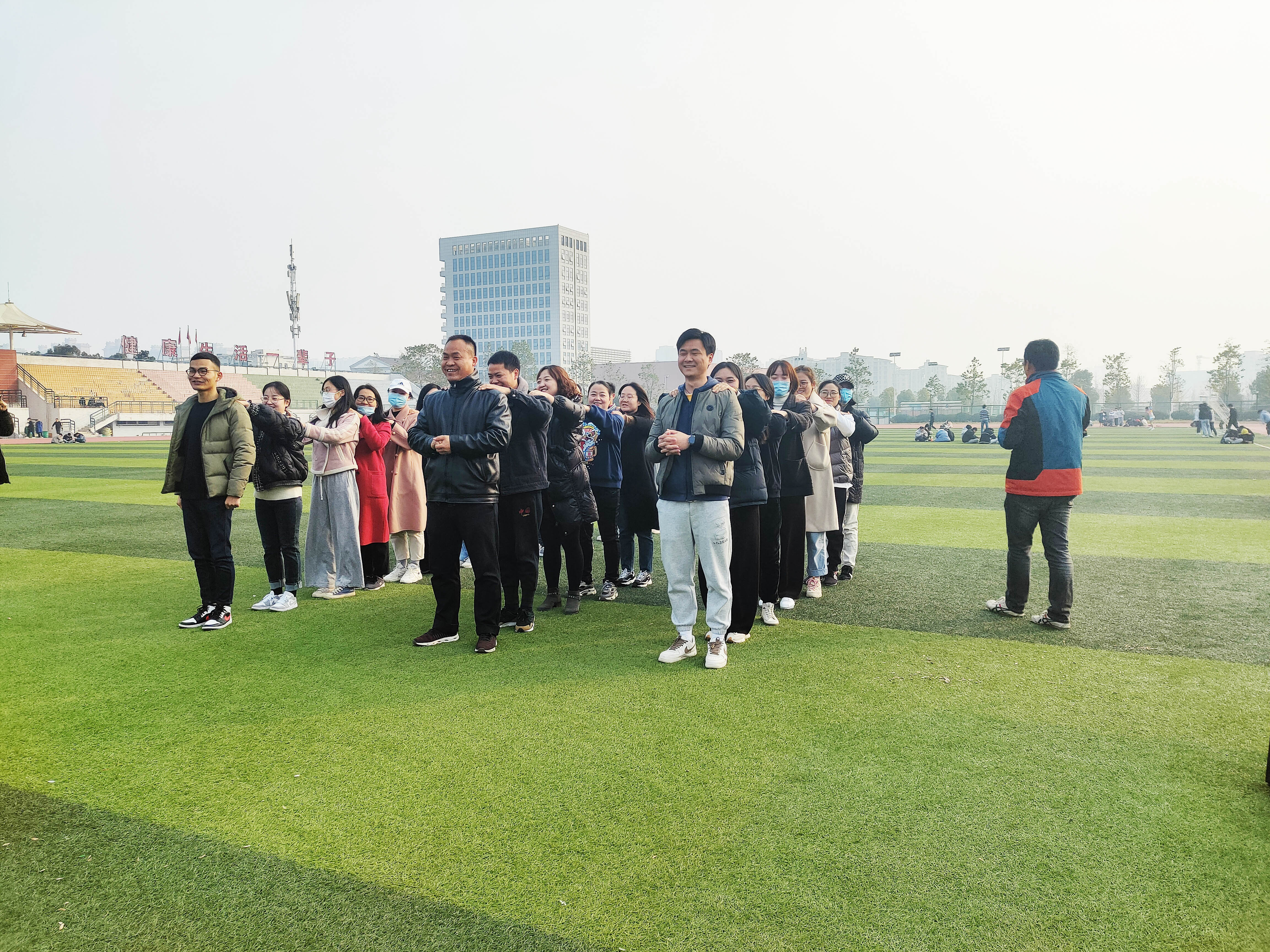 根据本次交流安排,12月7日下午各院学工人员再次齐聚祥云体育场,组织开展素质拓展活动。在专业教练的指挥下,学工人员经过热身活动后随机分成三组,开展了主题为“称霸武林”、“重走长征路”、“士兵大作战”的拓展活动。活动过程中,大家打破院系壁垒,积极参与,注重配合,增强了团队成员间的合作与信任,提升了团队协作能力。