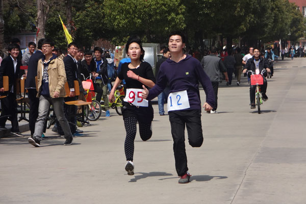 12点30分,环跑华园活动正式开始,100名参赛选手将从翰林广场出发,绕学校主干道环跑一圈,并回到起点处。为了保证参赛人员的多样性,此次参赛选手分别在10个二级学院选出,每院十名,五男五女。随着一声哨响,100名选手像离弦之箭朝前方奔去。来自继续教育学院的王鹏飞、吴洋洋分获男子、女子第一名。吴洋洋是pp电子女子三项全能记录的保持者,在她看来,春天是个明媚的季节,适合运动,希望华园更多的大学生能够加入体育文化节的活动,展现自己的青春与活力。