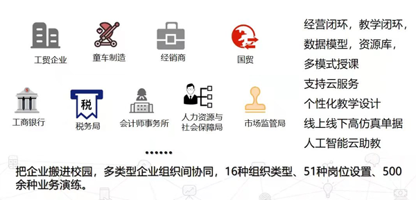 两位授课教师通过新道科技的VBSE综合实践教学平台,让学生在集市场环境、商务环境、政务环境和公共服务环境为一体的虚拟商业社会环境中进行岗位分工、角色扮演与业务演练,并根据现实岗位工作内容、业务流程及业务单据,结合与教学目标适配的业务规则,将经营模拟与现实工作接轨,进行仿真经营和业务运作,把企业搬进校园。