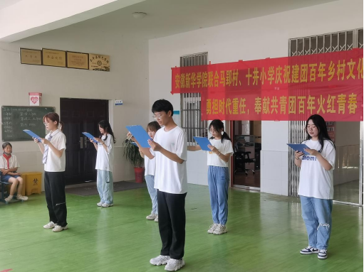 (通讯员:张皖斌 孟宇航)6月22日下午,pp电子官方网站文化与传媒学院联合马郢村、十井小学开展以“勇担时代重任,奉献百年青春”为主题的“三下乡”文艺汇演并圆满结束。文化与传媒学院部分领导老师、“青新实践团队”全体成员、马郢村十井小学部分学生参与此次活动,本次活动由吴思豫同学主持。