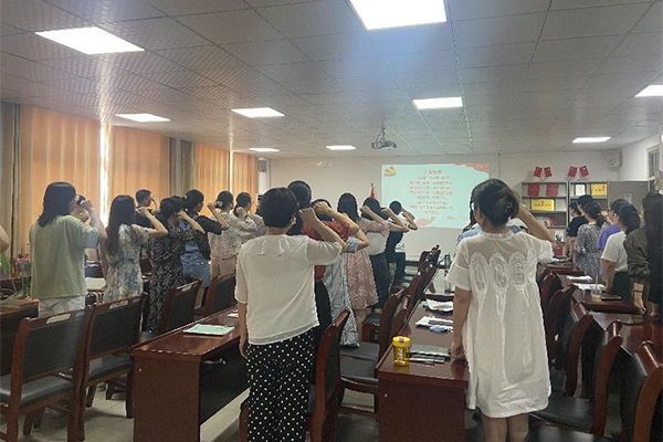 在党总支书记赵倩青同志的带领下,全体教师党员面对鲜红的党旗,举起右拳,重温入党誓词,宣誓声铿锵有力,现场庄严肃穆。