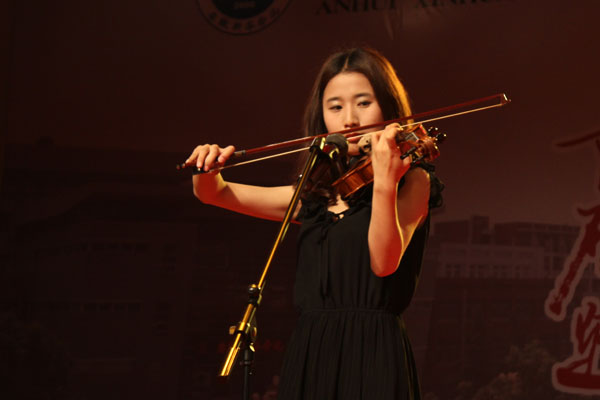 民族乐器展览会以“飞扬青春新时尚,传播音乐正能量”为主题。在松欧器乐社带来的大型器乐合奏《金蛇狂舞》拉开了本场晚会的帷幕,青春活力的队伍、精彩纷呈的乐器舞,舞出了同学们对蛇年的祝福。文化与新闻传播学院副院长贺行佳和2011级新闻学专业的李璐同学一起演唱了一首《风吹麦浪》,舒缓悠扬的音乐不自觉的将观众带入了音乐王国,同学们都不自觉的喝起了节拍,在大礼堂内也掀起了一阵阵的掌声。动感而富有节奏的《双吉他串烧》微颤的琴弦、清幽的曲调让人倾听青春的萌芽。晚会中最别致的莫过于这曲《民族乐器串烧》,多种乐器争先恐后的奏出婉转悠扬的曲调,让观众们领略了乐器交融的魅力。除了这些优美的乐器旋律,还有吸引人眼球的爵士舞,使整场晚会达到了高潮。