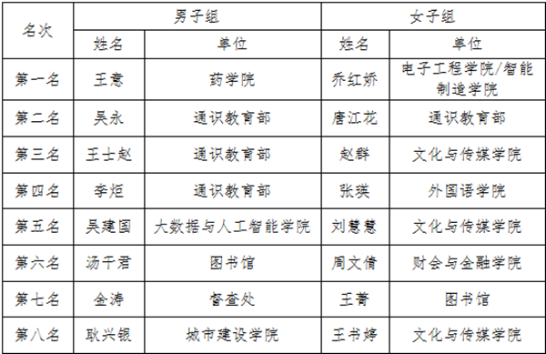 赛场上银球在空中飞舞,每位参赛选手都拼尽全力,斗智斗勇,推球、搓球、扣杀、发球抢攻、接发球抢攻等技战术运用自如,展现出非凡的球技。经过激烈的比拼,男女前八名运动员最终揭晓。(获奖名单见下图)