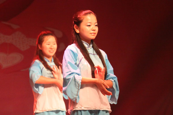 晚会在一首活力动感的英文歌曲中拉开了帷幕,欢快的旋律,温馨的歌词,让观众们忍不住轻声哼唱,晚会在一开场就气氛高涨。随后,校务助理团的同学表演了原创舞蹈《游子吟》,舞者们身着水袖蓝衣,和着诗歌《游子吟》的节拍,将古典舞蹈的美演到极致,博得台下观众的阵阵掌声。由大学生艺术团带来的一首《真的爱你》,以乐器组合的表演形式,表演者边唱边奏,他们精彩的表演将观众带到了音乐的世界中。节目《七子之歌》也给观众留下了深刻的印象,大学生们用诗歌的形式表明对家乡、对祖国深深的热爱,深情并茂的表演,慷慨激昂的朗诵,掀起了本场晚会的第一个小高潮。