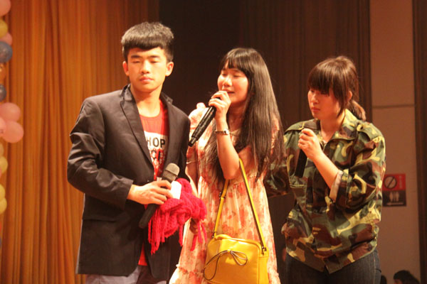 话剧表演《重温母爱》也是晚会一大亮点,节目讲述了一位慈爱的母亲,为了供养儿子在外读书辛苦挣钱的感人故事,演员们到位的肢体语言,真切的表情,把母爱之伟大淋漓尽致的表现出来,赢得观众的高声喝彩,将晚会推向了高潮。2012级商务日语专业的学生刘林芳在观看后说:“虽然只是个节目,但是它也取材于生活,在每个人的成长中,母亲始终是最爱我们的那个人,母爱的伟大,是我们不能描绘的。”晚会还邀请了著名杂技演员高鹏飞,精彩的缩骨功表演让观众不禁目瞪口呆,在欢呼声中,晚会圆满落幕。