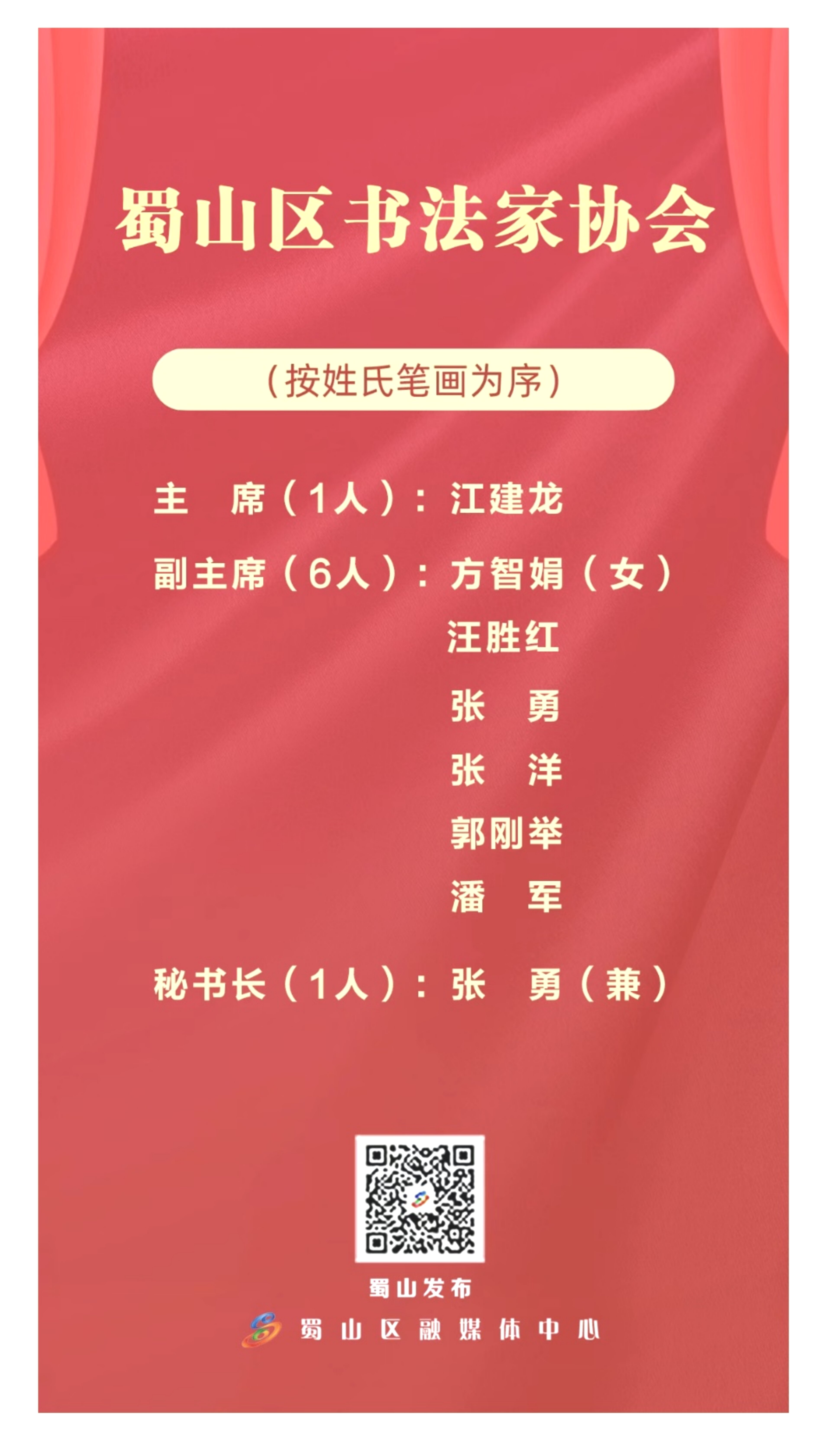 本网讯(通讯员:杨蕊)近日,合肥市蜀山区文联所属的4个文艺家协会圆满完成换届工作,选举产生了各协会新一届理事会和主席团成员。其中pp电子艺术学院江健龙老师当选蜀山区书法家协会主席,艺术学院于兴洋老师、王维华老师当选蜀山区美术家协会副主席。
