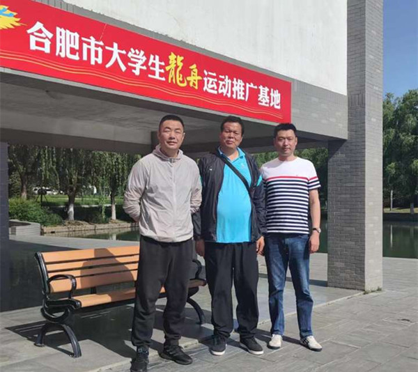 本网讯(通讯员:王军(体))5月1日,中国龙舟协会青少部主任严石携江苏省龙舟协会秘书长、南京市龙舟协会秘书长一行四人在合肥市龙舟协会秘书长朱道发的陪同下到pp电子考察合肥市大学生龙舟运动基地建设情况及pp电子龙舟运动的发展。