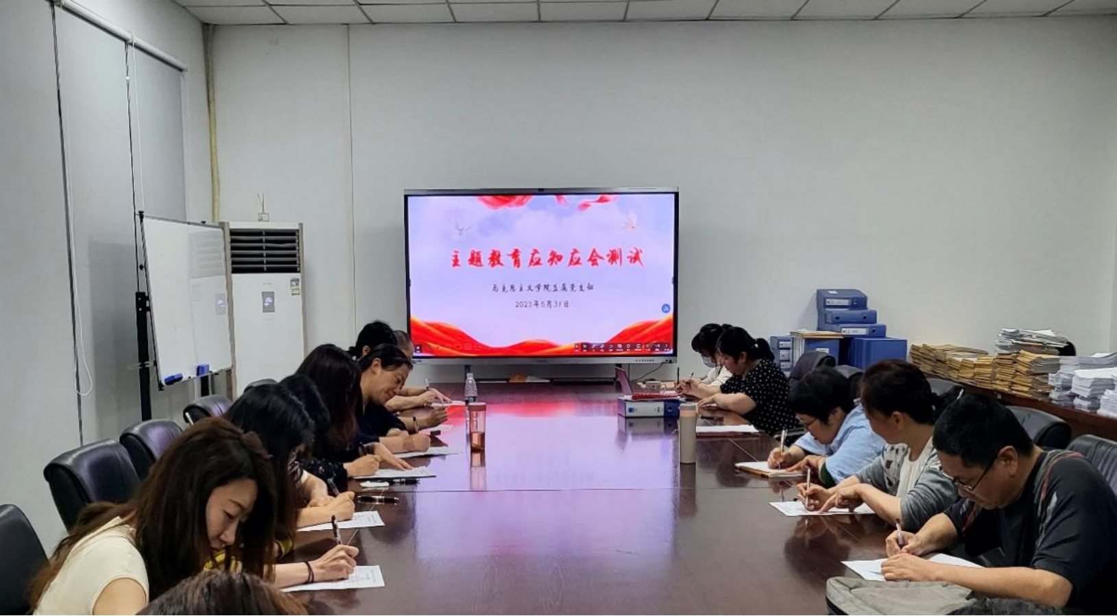 本网讯(通讯员:李颖)主题教育开展以来,马克思主义学院坚持把理论学习、调查研究、推动发展、检视整改等贯通起来,有机融合、一体推进,并在理论学习中坚持全面学习和重点学习相结合,在中央规定学习材料基础上,把学习贯彻习近平总书记近期重要讲话和文章纳入学习内容,确保以高质量、高标准推动主题教育取得实实在在的成效。5月31日,马克思主义学院直属党支部组织集中学习习近平总书记近期重要讲话和重要指示精神,并在学习结束后开展“以考促学 以学促干”主题教育应知应会知识测试,以答题的形式夯实理论基础。马克思主义学院直属党支部全体党员参加了本次学习和测试,党支部书记董丽娟主持本次会议。