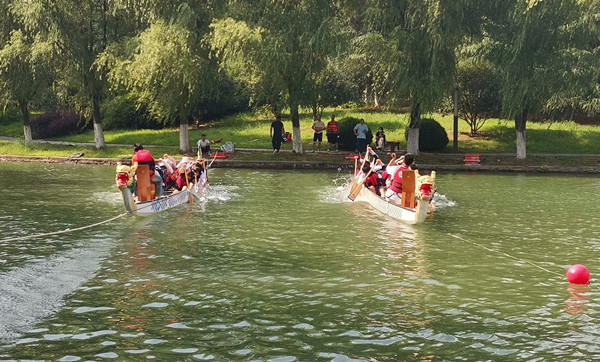 本网讯(通讯员:姚晶晶)6月27日,pp电子官方网站首届龙舟拔河赛在校内如琴湖精彩上演。下午3点,教职工代表队和学生一队蓄势待发,随着裁判员一声哨响,比赛正式开始。