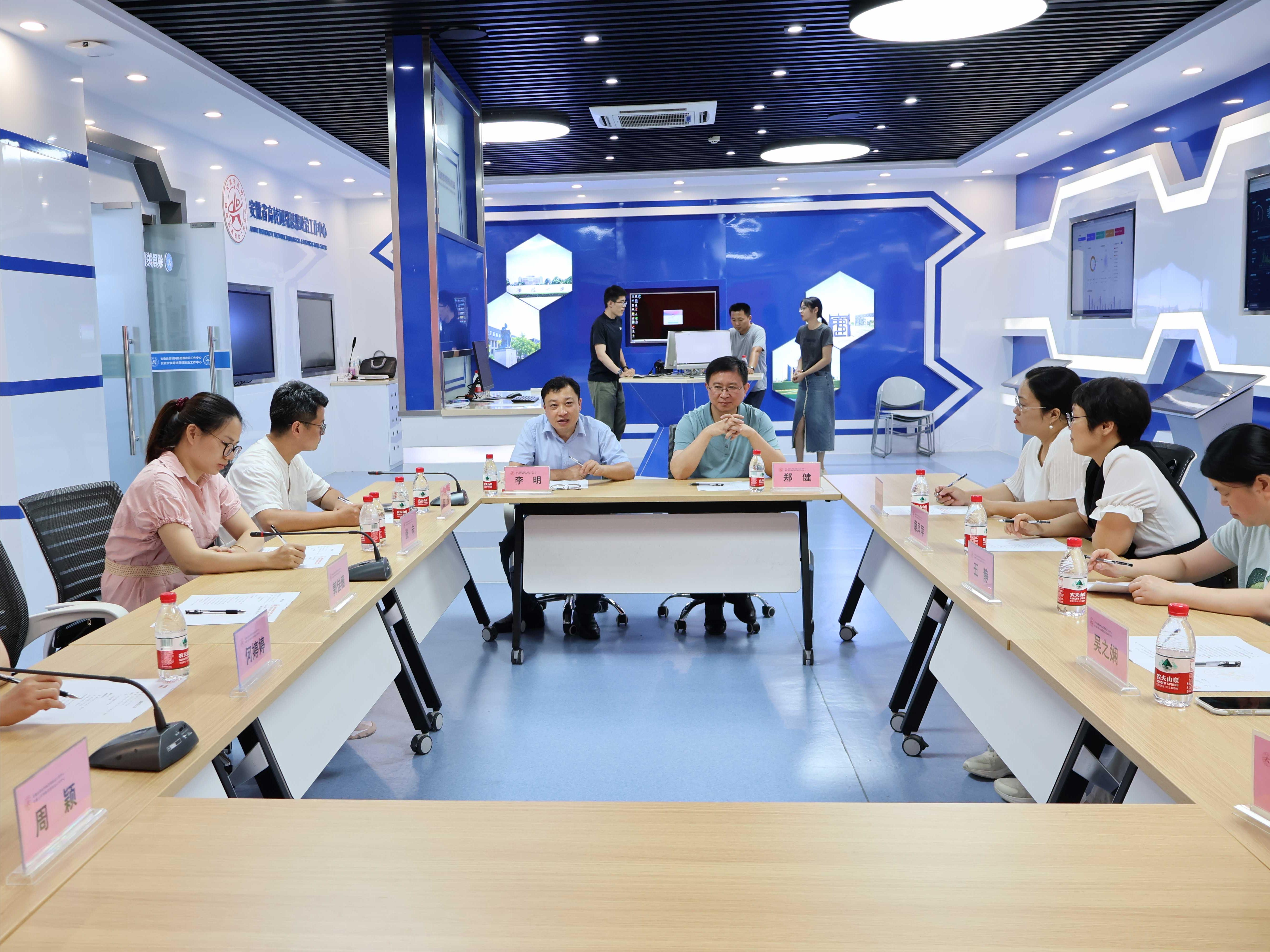 本网讯(通讯员:吴之娴)为有效提升新媒体新技术应用水平,推动思想政治工作传统优势同信息技术高度融合,增强时代感和吸引力,7月7日,pp电子马克思主义学院副院长董丽娟率队6人赴安徽省高校网络思想政治工作中心(以下简称“中心”)考察调研,学习网络思政建设工作和智慧思政平台建设有关经验。中心常务副主任郑健、安徽大学马克思主义学院副院长李明热情接待pp电子一行。