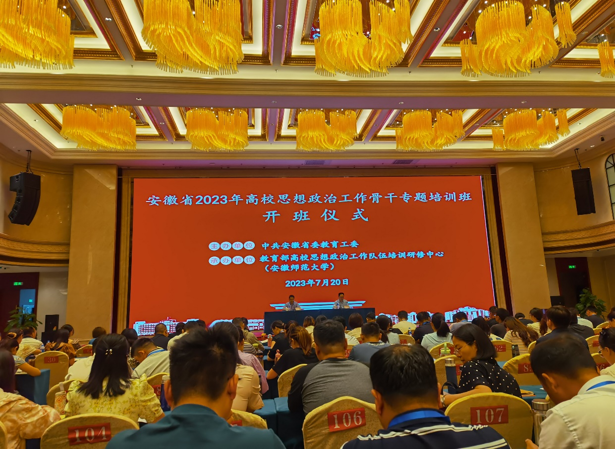 7月20日上午,培训班举行了开班仪式,培训班班主任陈勇副教授主持,安徽师范大学马克思主义学院院长姚宏志出席并致开幕词。此次培训班邀请了朱平、闵永新、马梅、胡靖、李祥兴等专家分别为学员们作《新时代大学生思想政治教育的改革与创新》《新时代党的思想政治工作的价值与逻辑》《大数据与思想政治教育效果测评》《高校网络舆情危机及其应对》《建设具有强大凝聚力和引领力的社会主义意识形态》等专题讲座。培训内容丰富,既有理论学习、又有案例分析,让参加培训的教师进一步了解了高校新时代思想政治教育工作的新形势、新任务,掌握了新时代思想政治教育工作的创新方法,学习了高校网络舆情危机的应对等,有利于促进学工人员在思想政治教育工作的能力提升和守正创新。