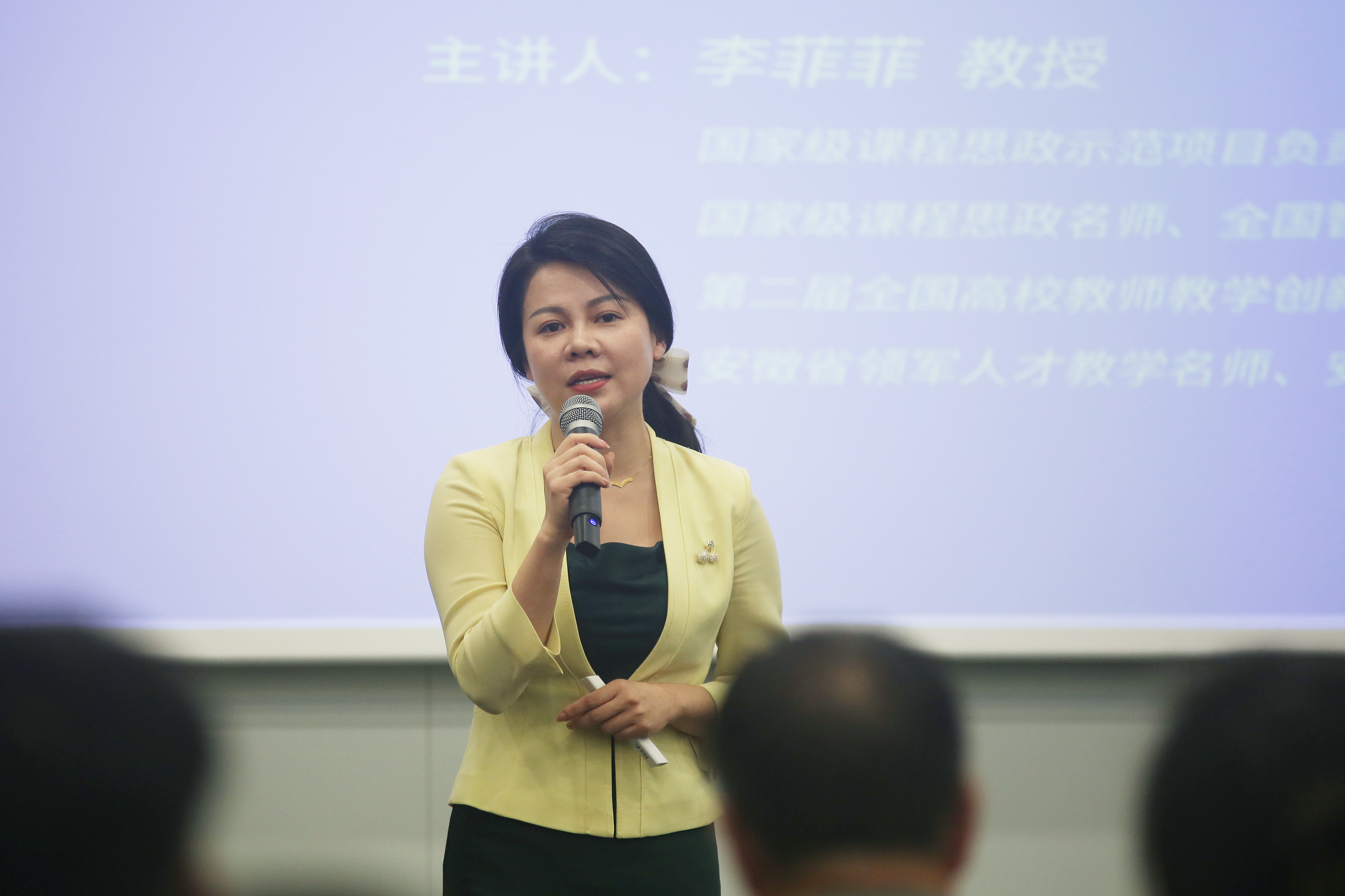 李菲菲,教授,国家级课程思政示范项目负责人,国家一流本科课程负责人,国家级课程思政名师,全国智慧教学之星,安徽省领军人才教学名师,安徽省研究生名师工作室负责人,安徽省卓越教学新秀。李菲菲教授以“从教学设计最重要的元素是什么?”引入这次培训的内容,解读线上线下混合式“金课”的标准,从定标——课程目标改革,定法——教学方法设计,树德——课程思政融入三个方面结合案例进行细致讲解。李教授强调了课堂教学设计的重点是要对标“两性一度”,既高阶性、创新性、挑战度。其次,李教授重点阐释了课堂结构设计可分为“引-启-呈-用-拓”五个阶段,以实现“知识输入、能力输出、素质融入”的教学目标。最后,李教授介绍以学生为中心的混合式教学设计要注重点面结合、能力导向、创新设计、深度混合。