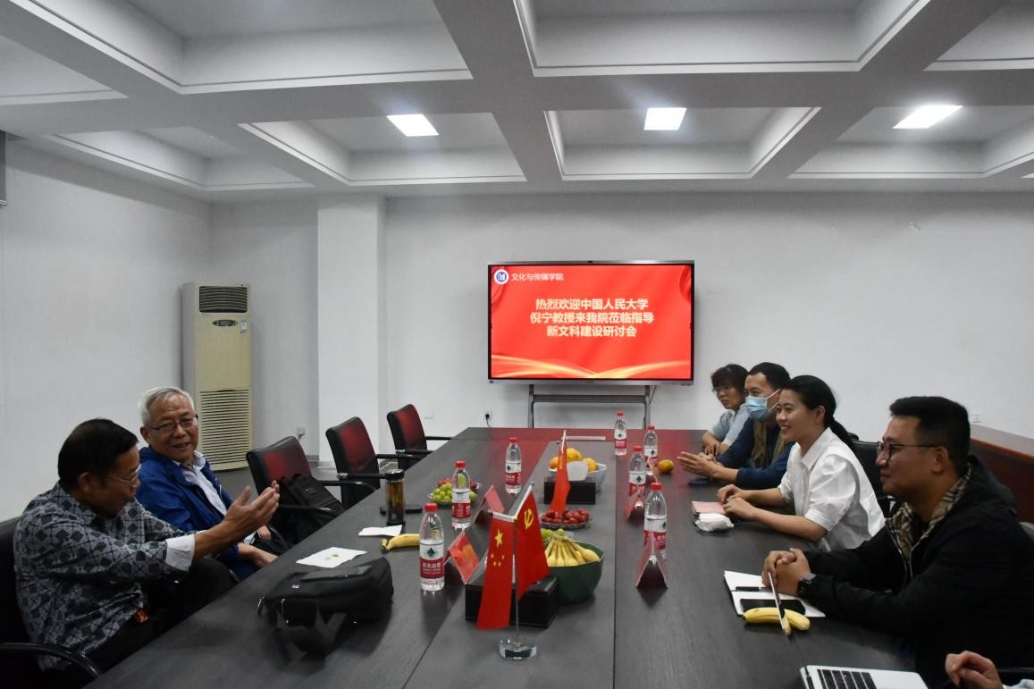 讲座结束后,学院领导、新闻系学科带头人、骨干教师等参加了新文科建设研讨会,洪玉从学院办学特色、教学科研、学生工作等方面汇报了学院的总体情况,并简要介绍了新闻学、广告学两个本科专业的发展情况。广告学专业学科带头人何玉洁、新闻学专业学科带头人方田、实验实训主管翟春翔等介绍了专业发展情况及存在的问题。