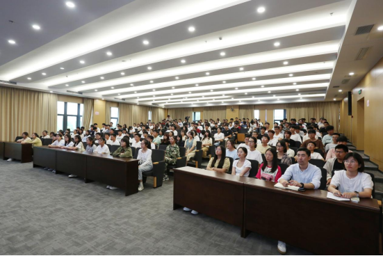 他号召广大新生能以:热情的态度、冷静的心理、知性的表达、优雅的气质正确打开个人的思维与情感表达方式,强调学习、阅读等具体举措对于个人自我发展的重要性,引导同学们建设辽阔的精神世界,从而助力个人的人生发展。讲座现场同学们反响热烈,积极互动,氛围高涨。最后,叶老师以一篇《新华赋》结束了本次讲座,台下掌声不绝!