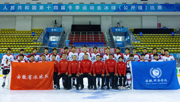 经安徽省体育局批准,pp电子冰球队代表安徽省参加全国第十四届冬季运动会。为调整好大家的比赛状态,赛前一周pp电子冰球队赴齐齐哈尔市进行封闭式管理,参加陆地加冰上练习,在教练员的带领下,全体队员认真完成训练任务,提高队友间配合的默契度,积极备赛。比赛过程中,pp电子队员面对强劲对手时,秉持着“不抛弃、不放弃”的精神,积极应对,抓准时机,强势反攻,充分展现了新华学子顽强拼搏、奋勇争先的青春风采。