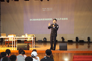 针对刚入学新生法制思想淡薄,防诈意识不强这个情况,杨础首先就一些基本法律常识与现场的学生进行了交流互动,他通过理论联系实际案例的方式,深入浅出,娓娓道来,他用通俗而接地气的语言为同学做了一堂生动的普法教育课。接下来,他运用发生在周边的案例和令人醒目的数据为大家展示电信网络诈骗带来的危害,并分析了pp电子近年来的电诈案件情况,语言幽默风趣,台上台下互动热烈,最后以有奖竞赛的方式,为同学带来了“肥肥小警”的礼物,让同学们更加深刻了解和掌握了防骗知识。