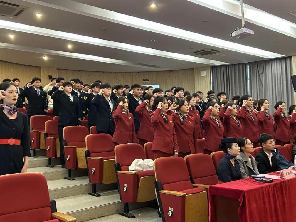 在宣誓环节,全体同学整齐、郑重宣誓,将践行民航精神,不忘初心,认真学习,严谨锤炼,时刻准备着为民航事业贡献自己的智慧和力量。
