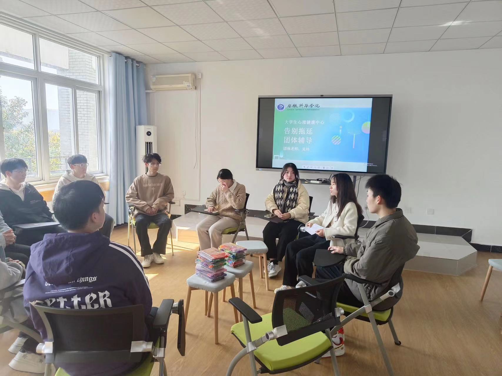此次活动共举办3场系列团体辅导,活动的主题涵盖了情绪管理、成长经验和自我控制等多个方面,从多个维度帮助学生赋能成长。心理中心全面统筹、精心组织,积极做好前期宣传和准备工作,各位专职心理健康教师结合学生特点,采用差异化和针对性的团辅方法,构建结构化团辅活动体系。其中,林斗秀老师通过绘画与学生共同深入讨论了“表达性释梦与大学生成长”的主题,为学生提供了一个思考自我成长的有益场所;通过“沙盘游戏”引导学生在故事中解读情绪ABC理论,激发内在能量;吴玲老师通过“告别拖延 学会自控”团体心理辅导帮助团体成员认识拖延及其产生的原因,积蓄成长的动力,进而摆脱学业拖延。