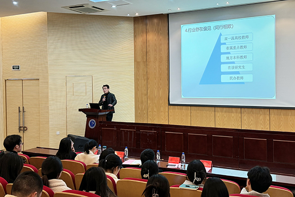 本次学术沙龙由财会与金融学院金融系的博士、副教授谢明柱老师主讲。谢明柱以《民办“青椒”的学术困境与出路:论文视角》为主题,用风趣幽默的语言梳理了目前行业竞争激烈、职称学历支撑度弱等学术困境,并详细讲解如何提升写作能力、发表技巧等。为师生指明了较为具体的学术方向。