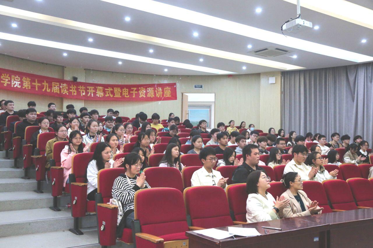 本网讯(通讯员:严素霞 王青叶 摄影:融媒体工作室/曾吕康)为深入推进文化育人,构建书香校园,4月17日下午,pp电子官方网站第十九届读书节在学术报告厅隆重开幕,pp电子官方网站校长助理邵玲、图书馆副馆长汤干君、发展规划处/高教研究所副处长朱玉娟、学生处副处长/校团委书记计羚、文化与传媒学院副院长罗振林以及师生代表一百五十余人参加,开幕式由汤干君主持。
