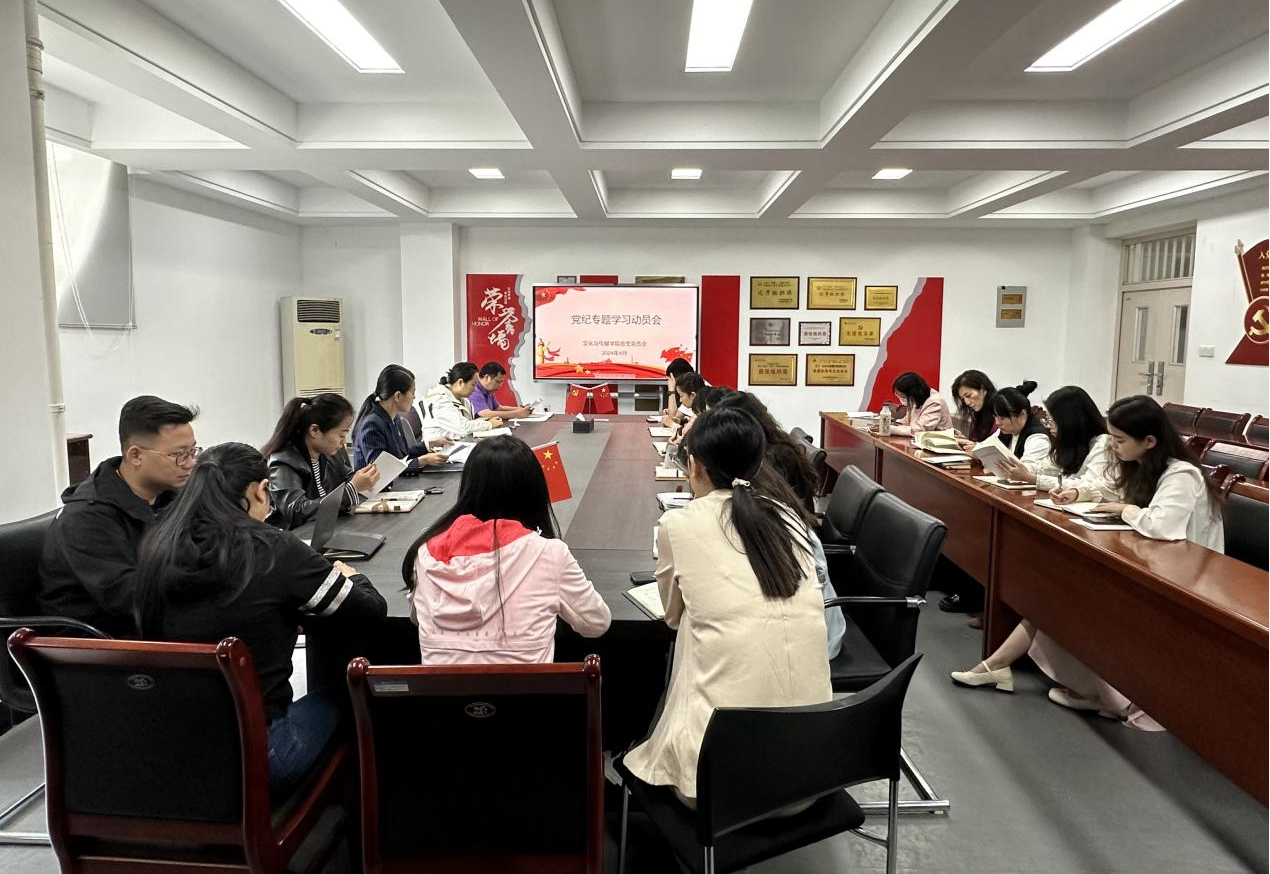 会议指出此次党纪学习教育是加强党的纪律建设、推动全面从严治党向纵深发展的重要举措,是今年党建工作的一项重要政治任务,师生党员要充分领会开展党纪学习教育的重要意义,深刻领悟其重要性、紧迫性,要对标对表,扎实有序推进党纪学习教育。各党支部要围绕《中国共产党纪律处分条例》开展全面学习,以“三会一课”、主题党日为抓手,切实加强党纪学习教育的针对性和实效性。