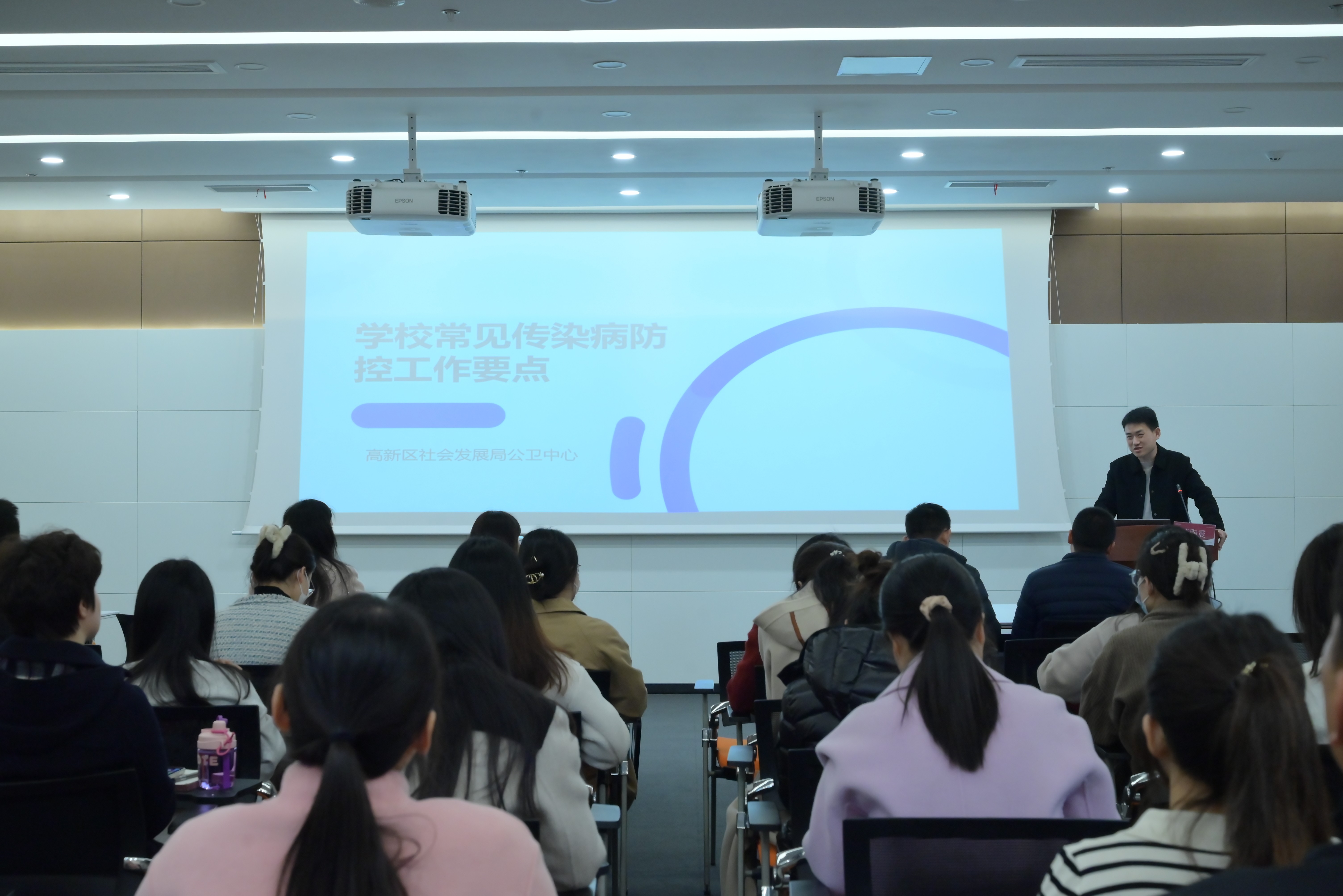 本次培训共包含《学校常见传染病防控工作要点》、《大学校园反诈专题课》两项业务培训以及《高校辅导员职业能力提升》专题讲座。首先,合肥市高新区社会发展局公卫中心公共卫生主治医师陶震给学工人员开展了传染病防控方面的培训,他作为一名从事多年疾控工作医护人员总结了校园常见传染病防控工作的重点和要点,分享常见传染病的防控防治方法以及发现相关病症时的正确处理方式,为pp电子学工人员提供了传染病防控工作的科学方法。