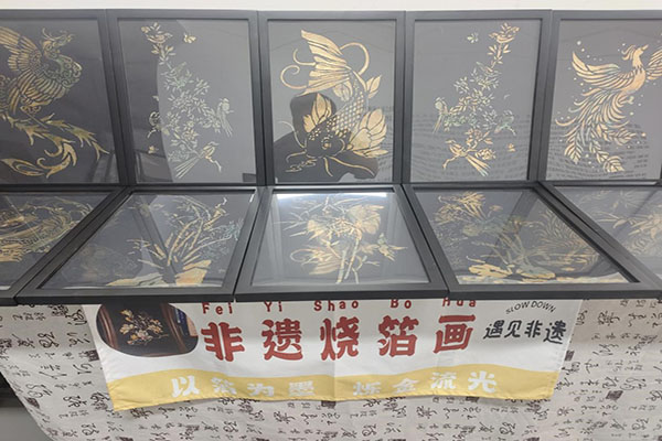 6 月 5 日,23 风景园林 1 班以“非遗进课堂”为主题开展了课程成果展。展览现场,捶草印花、漆扇、掐丝珐琅和金箔画这四种非遗表达形式的作品精彩呈现。同学们巧妙地将非遗技艺与风景园林元素相结合,让古老的非遗在现代设计中焕发出新的活力。捶草印花作品色彩鲜艳、纹理独特,仿佛诉说着大自然的故事;漆扇精致典雅,扇面上的图案与风景园林主题相得益彰;掐丝珐琅作品工艺精湛,细腻的线条勾勒出美妙的景观;金箔画更是闪耀着独特的光芒,为作品增添了一份神秘与高贵。