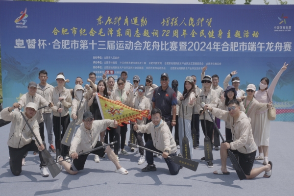 本网讯(通讯员:姚晶晶)6月10日,合肥市第十三届运动会龙舟比赛暨2024年合肥市端午龙舟赛在新站区少荃湖鸣鼓开赛。pp电子龙舟队积极参赛。