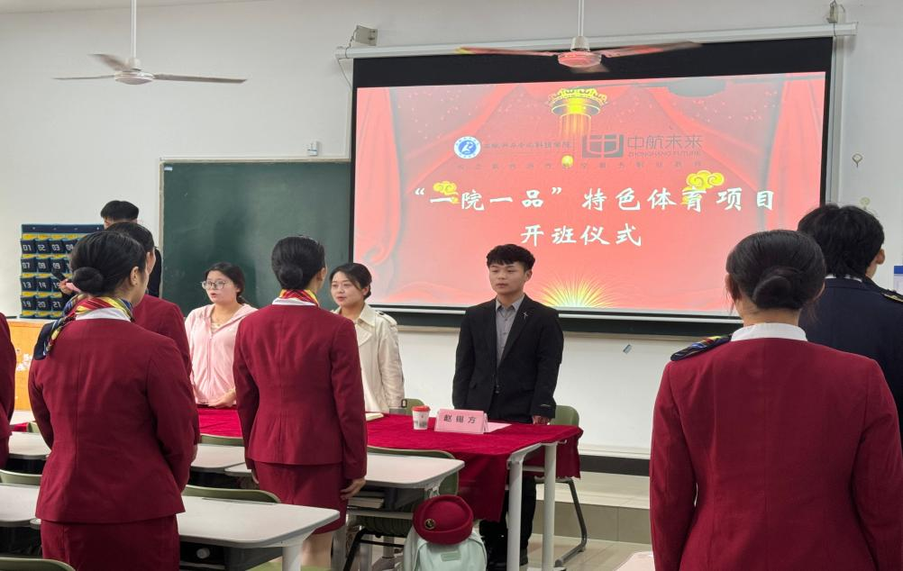 学院直属支部副书记、副院长朱向群、航空服务专业负责人赵锡方、班主任陈珍及“一院一品”特色体育项目全体学员参加开班仪式。