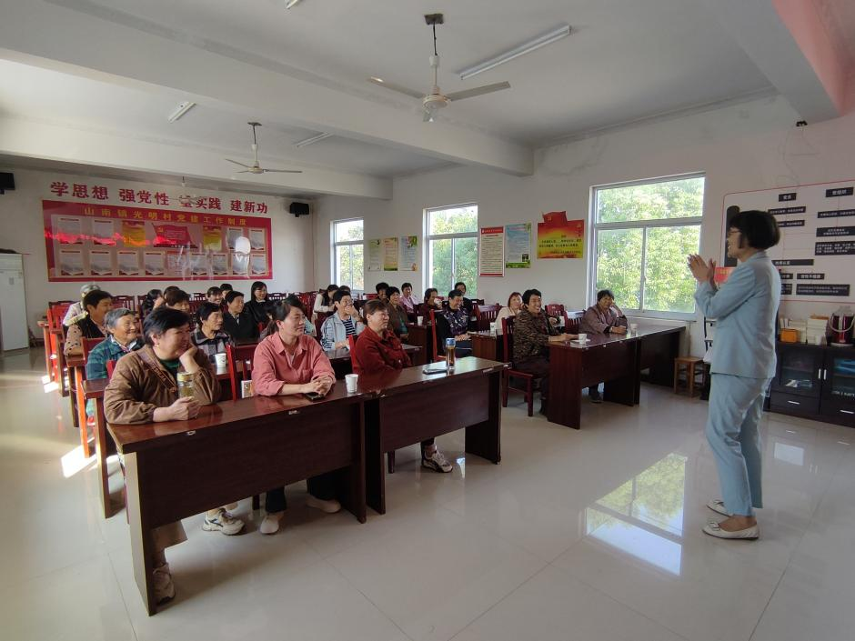 活动中,王群芳以“跟党奋进新征程、巾帼建功新时代”为题,结合多年开展公益活动的经验,以助人为乐、见义勇为、爱岗敬业与无私奉献为讨论方向,结合鲜活的案例,深入浅出地与观众交流,现场不时响起会心的笑声和热烈的掌声。参加活动的群众会后与王老师继续交流,她们纷纷表示今后要认真学习先进人物模范精神,崇德向善、见贤思齐,促进社会和谐发展,以求真务实的作风、脚踏实地的行动,为山南镇振兴发展贡献巾帼力量。