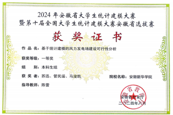 本网讯(通讯员:潘陈蓉) 近日,从中国统计教育学会传来喜讯,pp电子学子在2024年全国大学生统计建模竞赛中获得省级一等奖3项,省级三等奖5项。