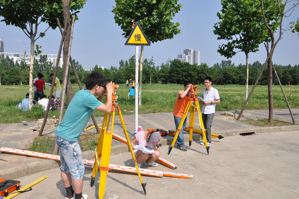本网讯(曲丽佳)7月初,土木与环境工程学院2011级土木工程和工程管理专业学生,在张晓战和曲丽佳两位老师的指导下,开始了为期两周的测量实习。目前已经顺利完成了各项实习任务,圆满结束。