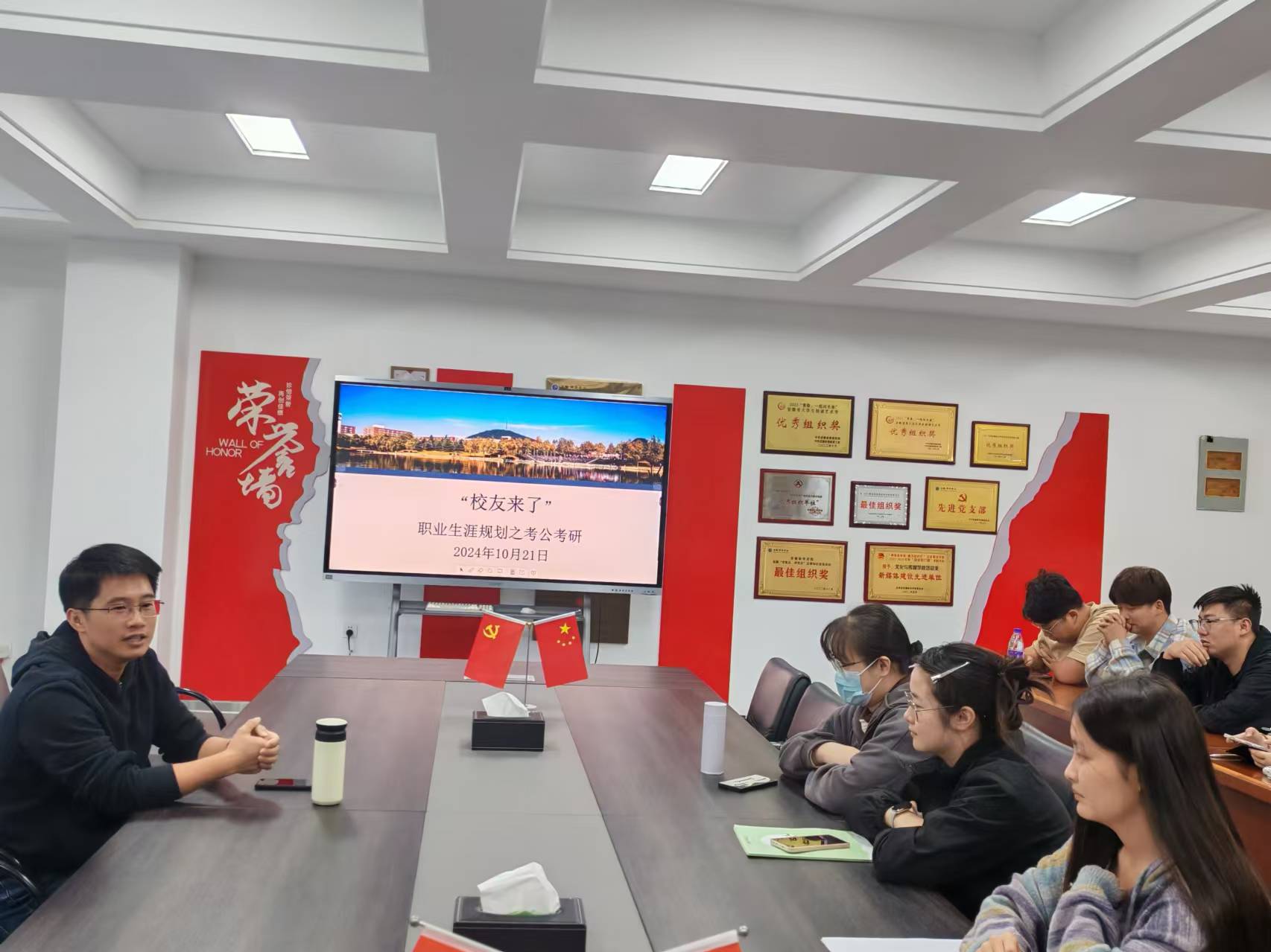 学院深知校友资源的重要性,特此策划举办了“校友来了”职业生涯规划之考公分享会。活动邀请2006届优秀校友连海强担任主讲嘉宾,他结合自己的考公经历,分享了备考过程中的心得体会、遇到的挑战及应对策略,为学弟学妹们提供了宝贵的参考。在互动环节,学生们积极提问,连海强耐心解答,现场气氛热烈,不仅加深了校友与在校学生之间的联系,更为学生们提供了宝贵的成长建议。
