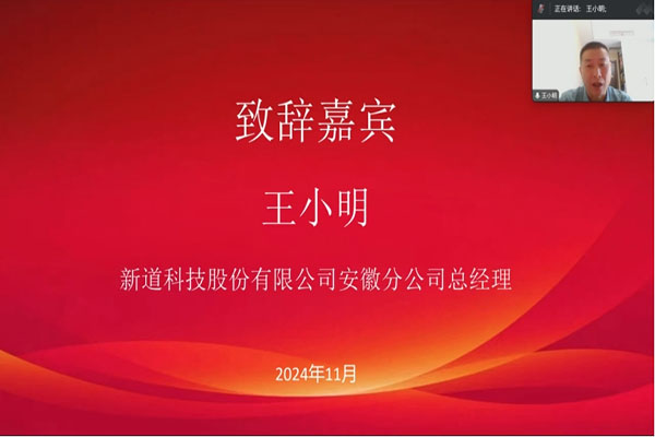新道科技股份有限公司安徽分公司总经理王小明代表大赛主办单位致辞,他表示本次比赛真正意义上做到对学生在数智化应用能力的培养,达到“以赛促学、以赛促教、学赛结合”的教学模式,深化产教融合育人。本届大赛不仅仅是一个比赛,更是推动院校与行业、企业的深度合作、资源共享,是为院校间提供了一个交流、学习的平台,是成为推进校企合作和创新人才培育的重要手段。