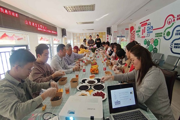 签署协议后,留学生们在蜀峰湾社区工作人员的带领下,体验了 “五黑丸”的制作过程。活动现场,工作人员详细介绍了“五黑丸”的制作方法和功效,并展示了相关食材。留学生们在工作人员的指导下,制作出了属于自己的“五黑丸”。这一环节不仅让留学生们了解了中国传统文化的博大精深,还让他们在实践中体验到了中国传统文化的魅力。