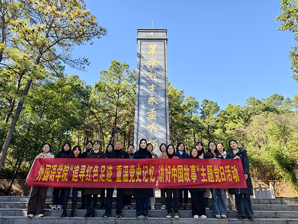 本网讯(通讯员:郭丽)11月29日上午,外国语学院教师第一党支部在肥东县六家畈举办了以“追寻红色足迹,重温党史记忆,讲好中国故事”为主题的党日活动。此次活动旨在通过实地探访红色遗址、重温党的历史记忆以及分享中国故事,进一步增强支部党员的党性修养,激发爱国情怀,同时展现外国语学院教师的专业素养和独特风采。
