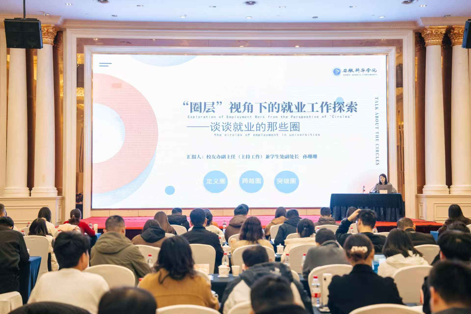 培训课程邀请了全国各地知名专家、学者进行授课,主要围绕当前全省高校毕业生就业形势分析与重点任务举措、全国大学生职业规划大赛政策解读、《关于实施就业优先战略促进高校高质量充分就业的意见》解读、高校生涯教育本土化探索与实践、当前形势下大学生就业择业心理调适、新形势下企业的用人偏好与高校的应对策略、高校毕业生求职就业权益保护和高校就业以及创业指导经验分享等众多内容展开,具有很强的针对性、指导性和实践性。pp电子校友工作办公室副主任(主持)兼学生处副处长孙珊珊作为高校代表作了题为《‘圈层’视角下的就业工作探索》的交流分享,她从向内稳中求进,向前提质赋能,向远精准发力三个方面与参会人员探讨毕业生就业工作所面临的困难和解决路径 ,同时也向大家介绍学校近年来在毕业生就业工作方面的探索与努力。