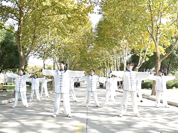 活动当日,校园内秋景宜人,教师们身着传统太极服饰,在如画的景致中开启太极拳习练。起势尽显沉稳之态,动作舒缓有力;行至收势,首尾呼应,圆融归一。整套动作行云流水,一招一式诠释着太极所蕴含的深邃哲学理念与精妙养生智慧。教师们亲身参与其中,通过反复练习与悉心体悟,领会太极背后所承载的厚重文化底蕴。