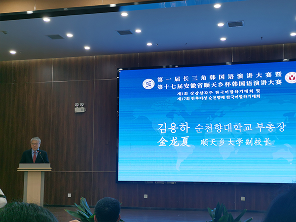 来自韩国顺天乡大学的副校长金龙夏先生发表了讲话,他表示,参赛选手们通过热情洋溢的演讲,不仅展示了他们的韩语能力,更展示了他们对中韩文化交流的深刻理解与参与精神。这一场精彩的比赛,不仅是学术能力的比拼,也是对文化认同与友谊深化的体现。