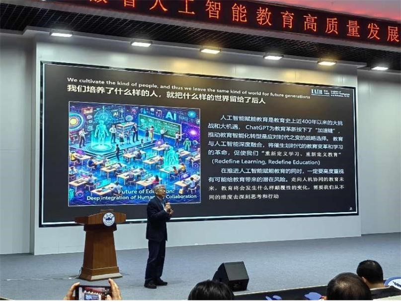 最后,安徽大学教务处处长李学俊教授就“安徽省人工智能通识课程与教材基地建设进展”进行了报告,展示了安徽省在人工智能教育课程和教材建设方面取得的成果。