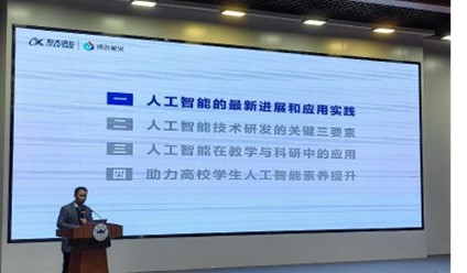 接着,科大讯飞高级副总裁胡国平博士分享了“通用人工智能技术进展及教育应用实践”,详细介绍了人工智能技术在教育领域的最新进展和实际应用案例。