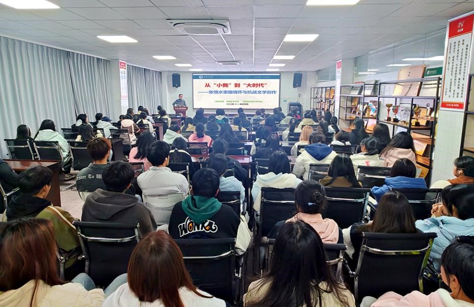 此次讲座中,谢家顺详细讲述了张恨水的生平与思想历程,展现了张恨水的双重性格与其抗战文学的作品特色。他以严谨的态度和深情的语言,为学子们呈现了一位极具正义感和使命感的爱国文人,在丰富对张恨水抗战文学认知的同时也提升了广大学子对张恨水小说的浓厚兴趣,赢得了同学们的热烈掌声。