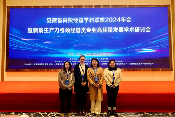 本网讯(通讯员:穆晓彤)12月6日至7日,安徽省高校经管学科联盟2024年会暨新质生产力引领经管类专业高质量发展学术研讨会在巢湖市召开。本次会议由安徽省高校经管学科联盟、巢湖学院联合主办。财会与金融学院执行院长濮明月、副院长张璐、会计系主任助理朱晓丹和财审系教师穆晓彤一行四人应邀参会,与省内30余所高校的150余名代表齐聚一堂,共谋发展。