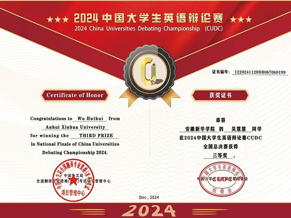 外国语学院学子在全国大学生英语辩论赛中荣获全国三等奖