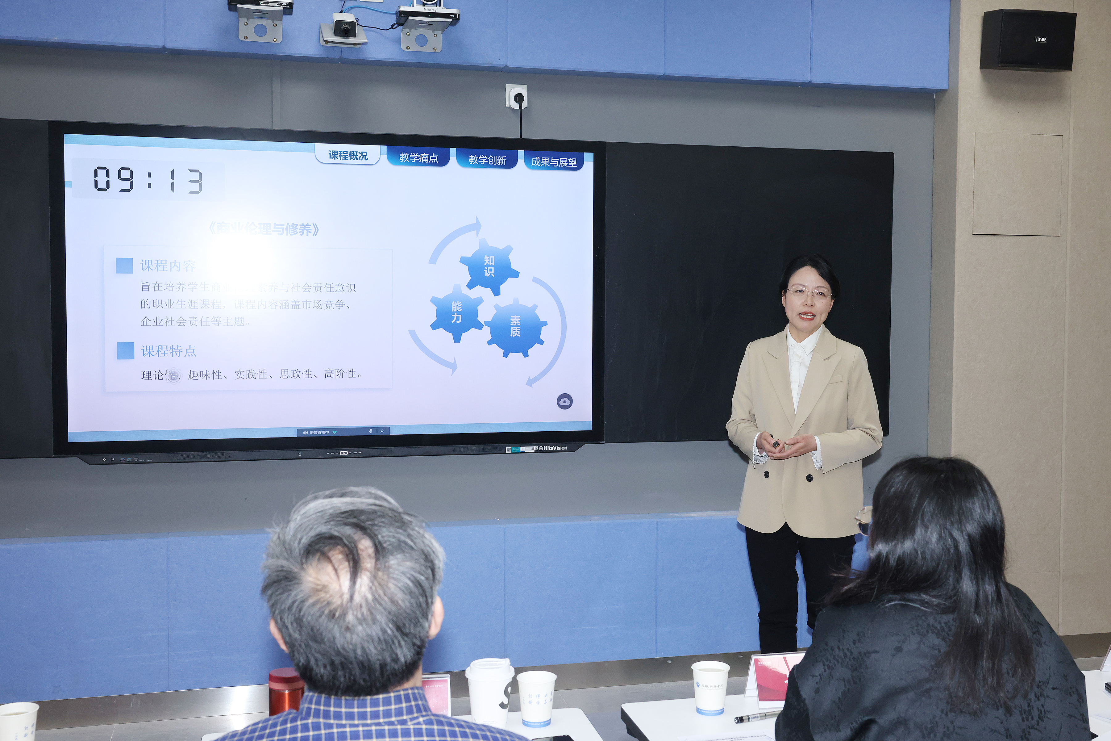 参赛教师围绕参赛课程,开展分析学情,剖析教学痛点、难点,从教学内容重构、教学方式转变、教学资源建设、智慧技术赋能、教学评价改革、课程思政融入等维度,进行了教学设计创新汇报。大赛过程中,评委与参赛教师进行提问交流,针对课程建设的持续改进提升给予了宝贵的指导意见。